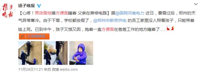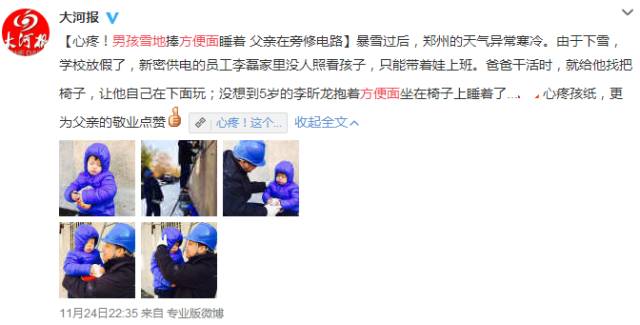 “时间紧、任务重,9天新密要安装13万块智能电表,为了不耽误市民用电,我们必须加班加点。”李磊说,带儿子上班也是无奈之举,当时他也是经同事提醒后才知道儿子在梯子下面睡着了。他赶紧从梯子上下来,把孩子抱入怀中。