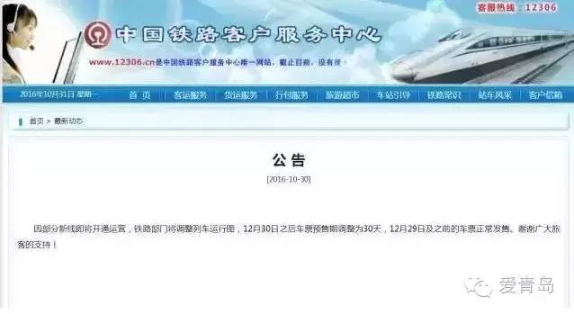★中国铁路客户服务中心12306网站发布的公告,因部分新线即将开通运营,铁路部门将调整列车运行图,12月30日之后车票预售期调整为30天,12月29日及之前的车票正常发售。而春节(1月28日)购票,只能等到12月30日后了。