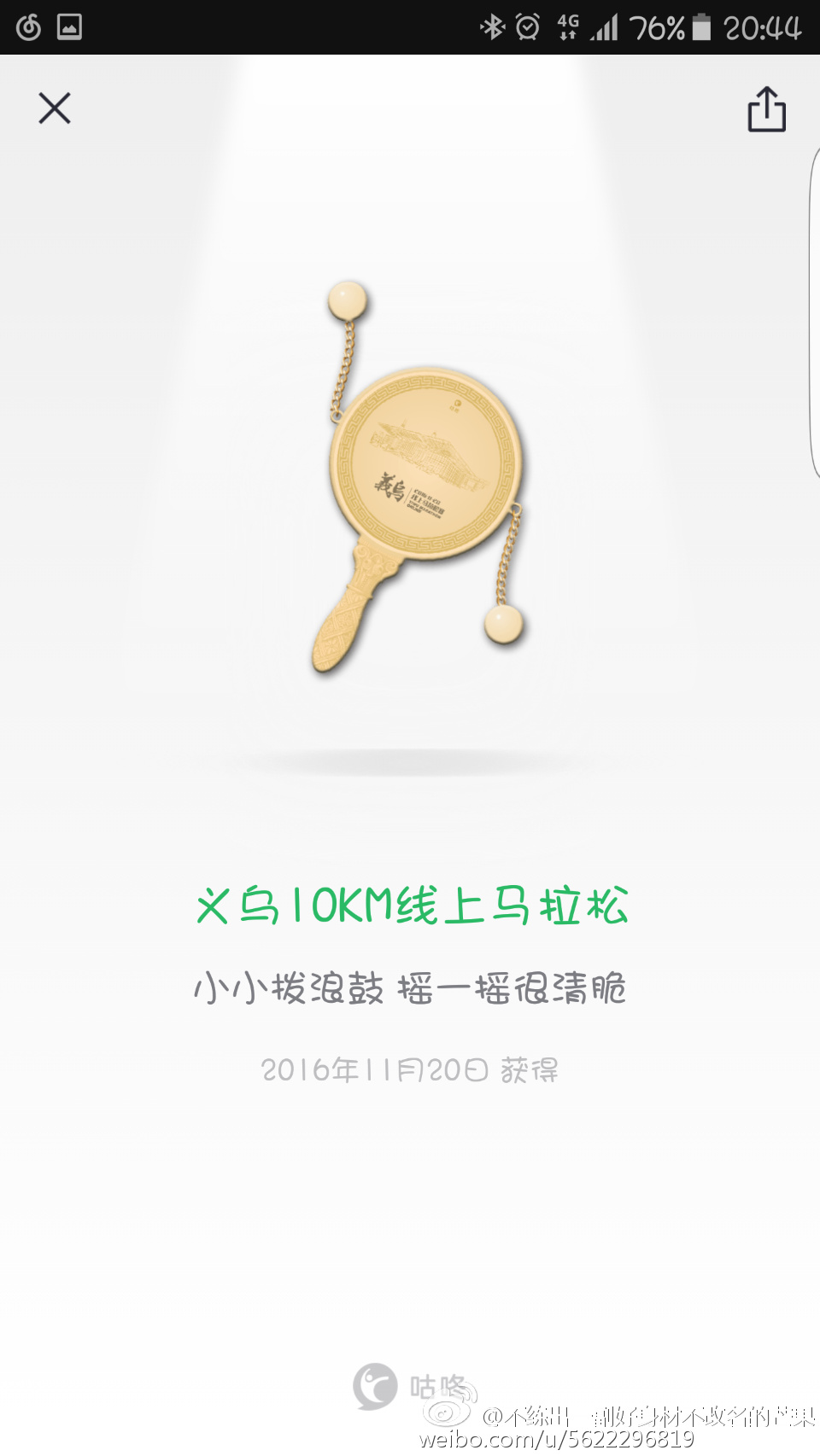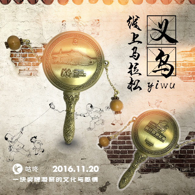 马拉松是特殊的体育项目,除了包含竞技体育的竞争精神,更是全民参与运动的最典型代表。你是否参与其中、乐在其中,是否把挑战自己变成习惯,才是每一个跑者所看重的,也正因如此,咕咚跑友才会每次都对心中的里程提出更高的要求,对线上马拉松的奖牌也看得特别重,这是对“自己战胜自己”的最好褒奖。咕咚义乌线上马拉松的奖牌和主题当中的“童年如梦”自然贴近,金属材质的拨浪鼓造型,工艺细腻、花纹精美;整体古铜色则代表了义乌这座历史名城的自然积淀。让跑者对“山河如画”有了更高的期待值。