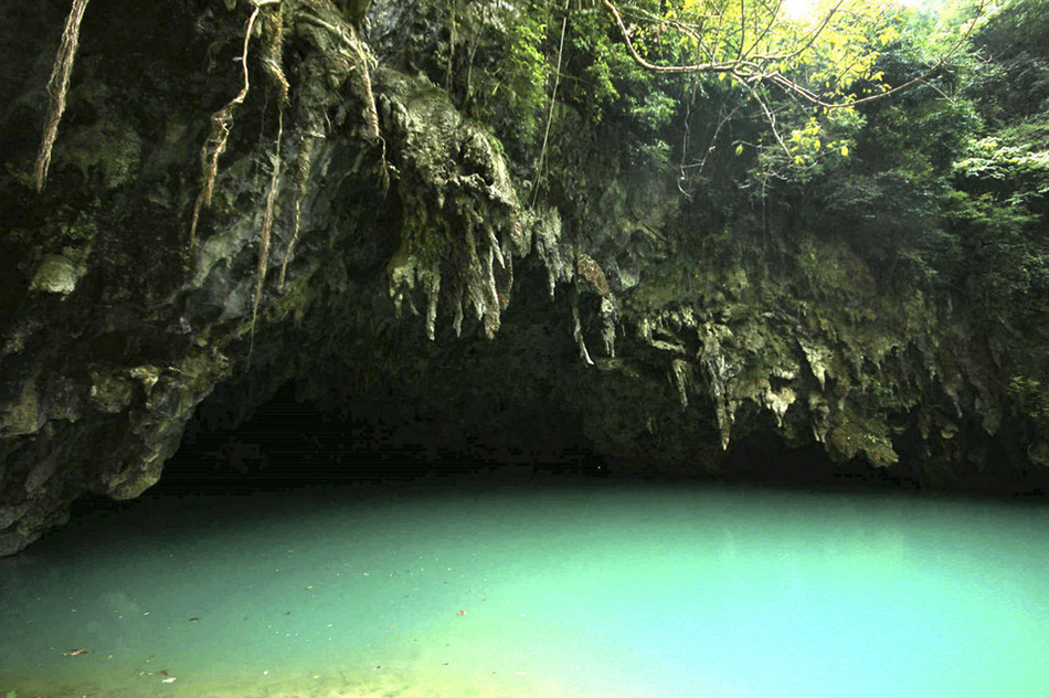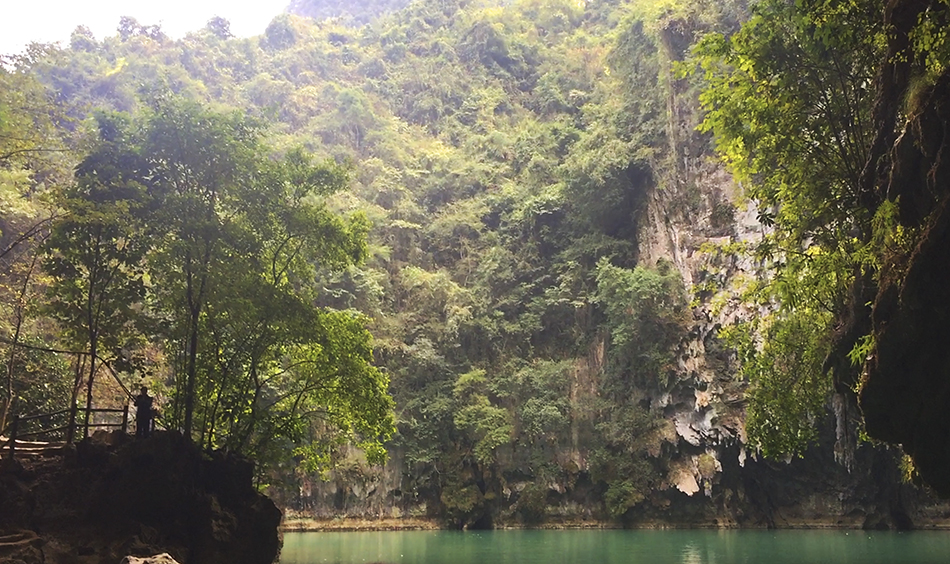 青岛新闻网讯 近日,"2016 全国重点网络媒体河池行 " 采访团到达广西河池市凤山县三门海景区,领略 " 山中有海、海上有门 " 的串珠状塌陷天窗奇景。凭借规模巨大的天窗群以及奇特壮丽的景观,三门海景区被世界洞穴协会确认为目前世界上唯一的水游天坑景区。