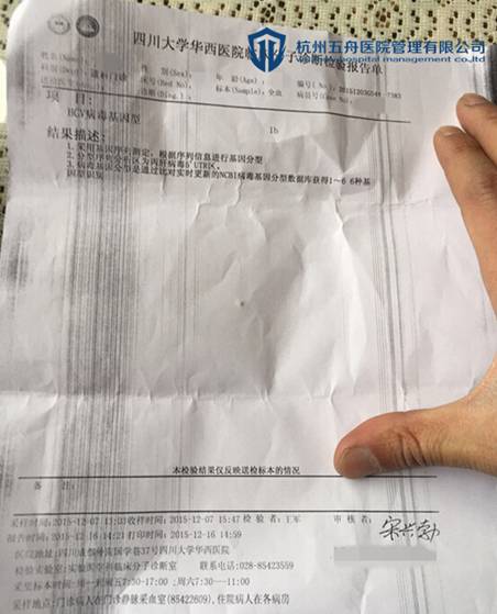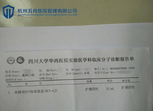 1月16日,陈先生收到了药物并于当天晚上就开始服用药物。经过四周的治疗,陈先生再去医院检查发现病毒量已经转阴了。立即告知杭州五舟蒋医生,蒋医生建议继续服用药物至12周,以保证丙肝不复发。