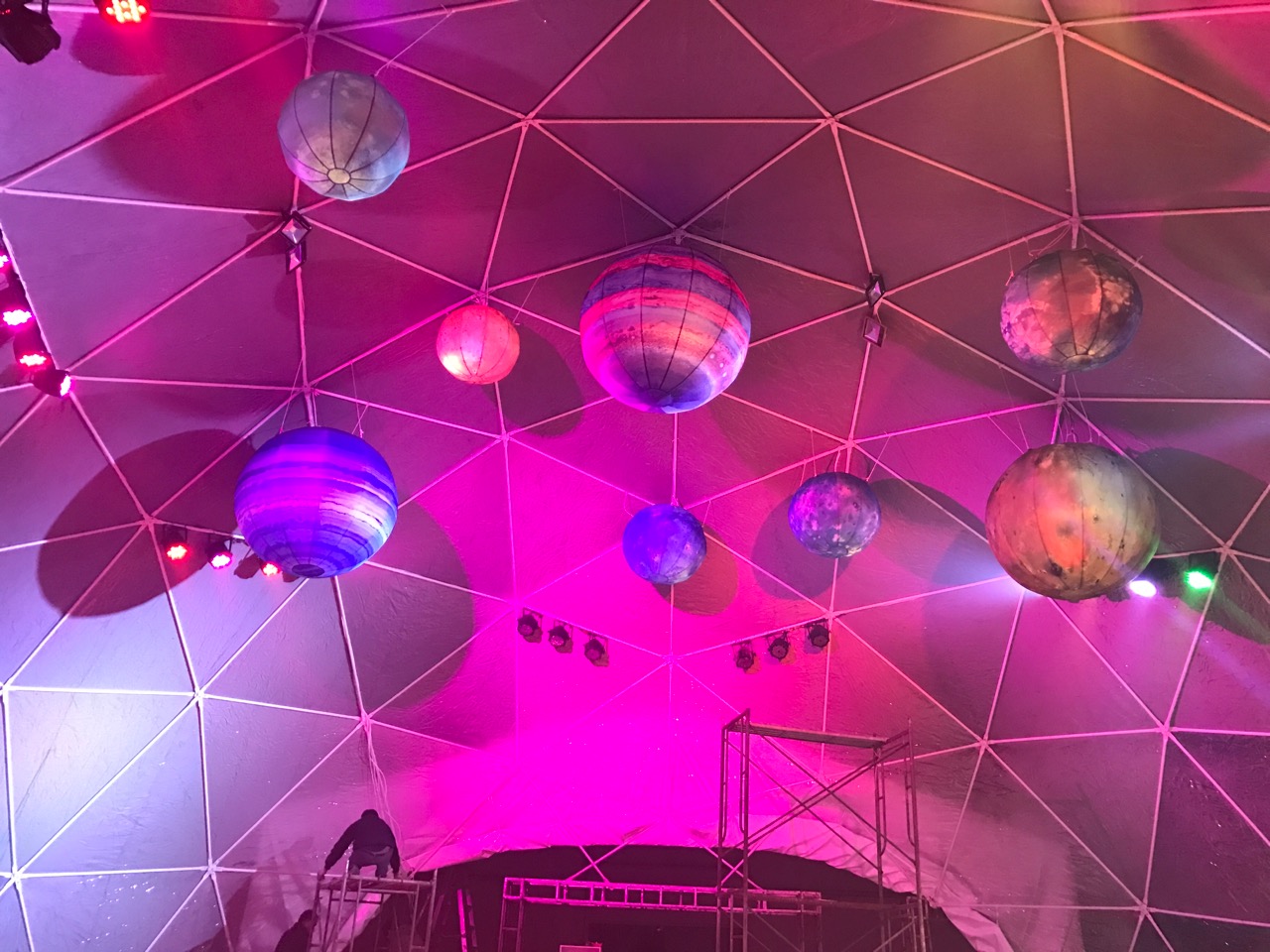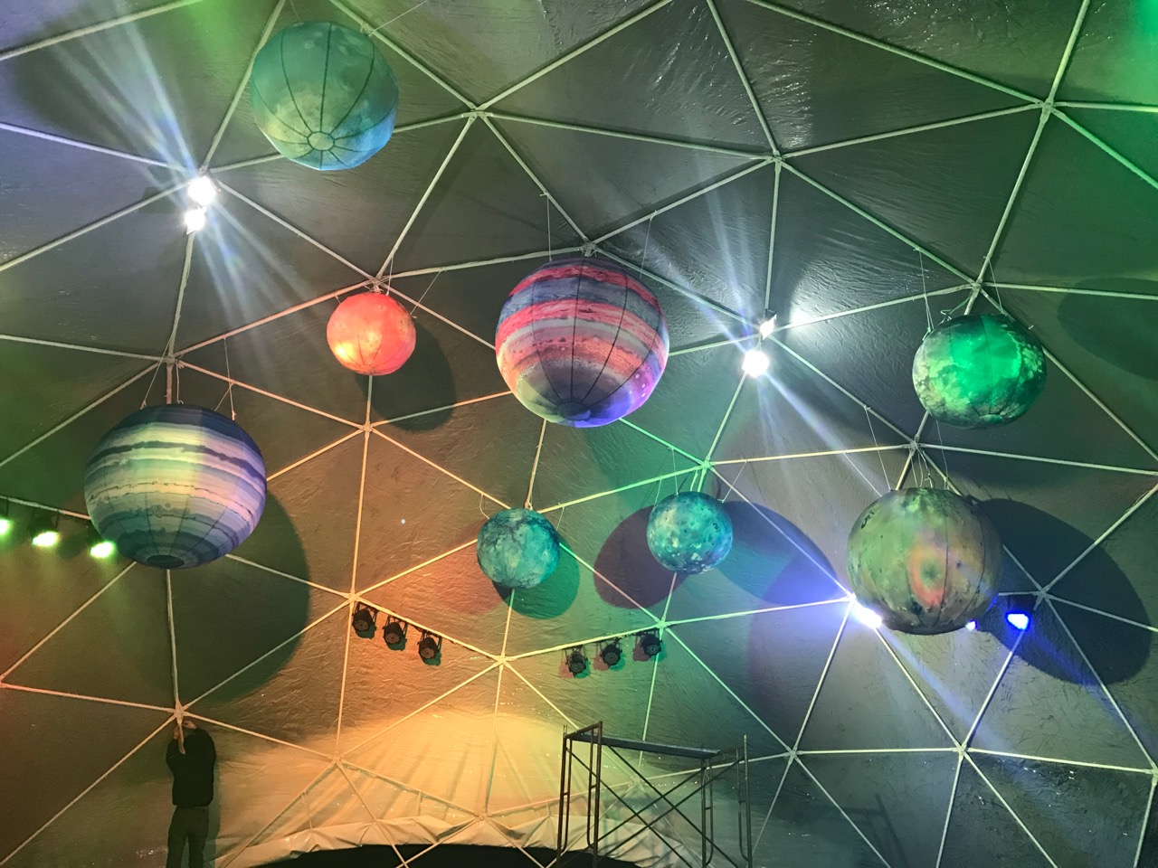 “超级娱乐星球”整体外观采用“星球”造型,以球幕模拟天空,将自己置身于穹顶之下,八大行星的悬在顶部,熠熠生辉,宇宙飞船穿梭其间,逼真的星际空间让游客感受太空的梦幻魅力。
