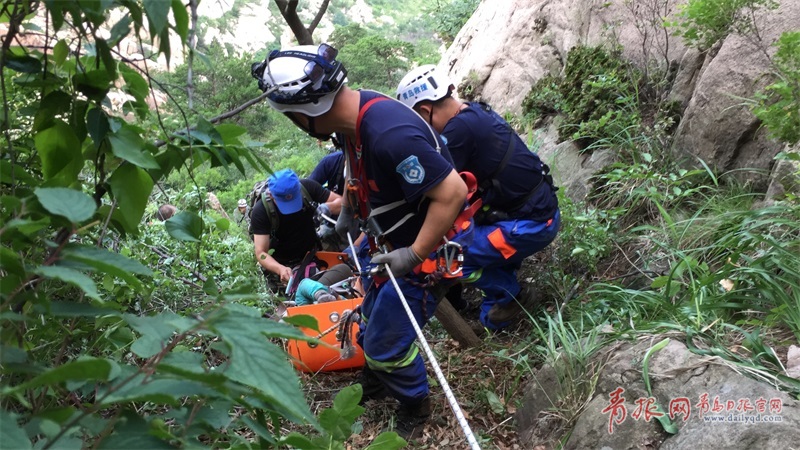 青岛红十字蓝天救援队在救援现场