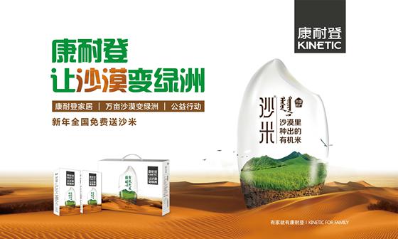 在这片遍地荒芜、飞沙走石的地方,一大片“沙漠绿洲”十分显眼,这里就是沙米的种植基地。通过铺设地膜、科学灌溉等方式成功创造出了沙米的种植奇迹,不仅极大的改善了当地的生态环境,变沙漠为绿洲,还产生了巨大的社会效益,成为当地居民的“聚宝盆”,带动了当地经济的发展。同时,由于当地所独有的生长环境让沙米的品质远超普通大米,成为营养十分丰富的有机作物,前景十分广阔。而在这片沙漠奇迹中,还有着优秀家居企业康耐登的积极参与,前述用户所领到和品尝的优质沙米,正是康耐登投入了600万元在该事业中,并于今年新收获的100吨新沙米。