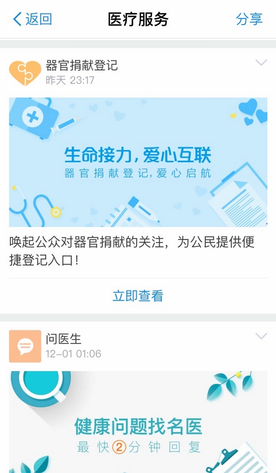 2016年12月22日起,中国人的器官捐献登记渠道又多了一个,就是拥有4.5亿用户的支付宝。卫计委下属中国器官移植发展基金会在支付宝医疗服务平台上线了“器官捐赠登记”功能,支付宝实名用户可一键完成登记,过程不超过10秒。我国器官捐献登记工作真正进入了“互联网+”时代。