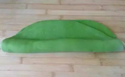 步骤五,菠莱面将白面条包紧,切去多余面片