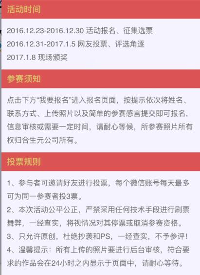 2016-2017跨年之际,青岛新闻网联合广州市合生元生物制品有限公司共同推出“合家粉丝上头条 辣妈萌娃齐跨年”的网络评选活动,即日起,凡上传与合生元产品的同框照片,并附上你对与合生元产品的体验认识,参与网络评选,即有机会赢取千元跨年大礼包!