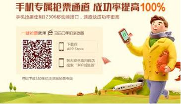 此外,使用360手机浏览器抢票也可以大大提升抢票成功率。作为中国用户量最大的第三方抢票平台,自2011年以来,360浏览器已帮助全国两亿多用户顺利买到了春运回家的车票。今年更是大力优化移动端,推出了360手机浏览器抢票专版(360手机浏览器8.0),具有高效识别12306图片验证码、全自动刷票、抢票提醒、双引擎抢票等功能。