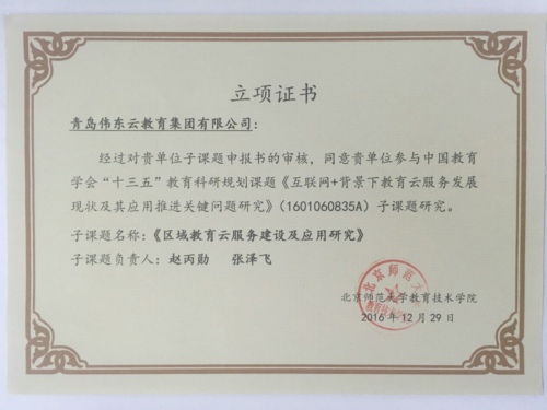 伟东云教育紧跟国家信息化建设的方向,在获得国家“十二五”智慧学习环境的构建与应用研究中的“智慧教与学”课题后,在即将开启的2017年新年之际再次获得 “十三五”国家重点课题,并且将研究领域定位于现在教育信息化领域最为关注的区域教育云服务建设方向,就像评审专家提到的伟东的选题结合自身现状,将能在研究中发挥自身优势。与此同时,国家级课题可为伟东云教育提供品牌背书,可作为推动区域化市场应用和解决方案的重要“利器”之一,对已经部署伟东云教育平台的区域,可以通过课题研究的方式促进区域对平台的使用和研究,对于未开拓的区域市场,可以通过课题研究进行合作交流,从而促进伟东云平台的市场推广和运营。