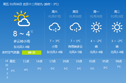 青岛6日多云转小雨 最高气温8℃最低气温4℃