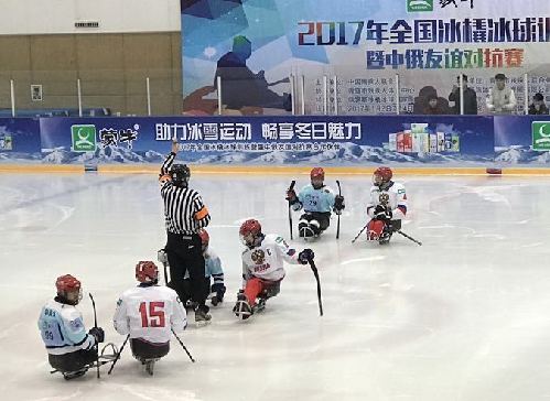 2017年全国冰橇冰球训练营暨中俄友谊对抗赛于1月10日在青岛国信冰场举办。来自俄罗斯、北京、河北、黑龙江、辽宁、山东、新疆7支代表队的103名运动员、教练员等参加了本次比赛。