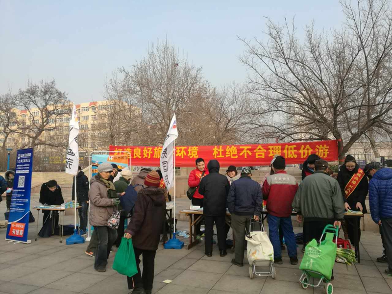 2016年10月国家旅游局发布旅发【2016】136号文《国家旅游局关于组织开展整治“不合理低价游”专项行动的通知》,为积极贯彻落实,杜绝不合理低价游侵犯消费者合法权益,防止黑社黑导以各种手段诱骗老年游客参与免费或不合理低价旅游产品,正面引导老年游客参团报名正规旅行社,市北区旅游局于2017年1月13日在市北区海泊河公园开展了“打造良好旅游环境 杜绝不合理低价游”的宣传活动。