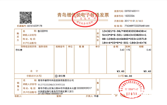 青岛新闻网讯 1月16日,华睿停车公司开出了第一张停车费增值税电子发票,这也是山东省第一张停车费电子发票,标志着山东省停车行业停车费电子发票时代已经来临。停车费电子发票的应用,是华睿停车公司智慧停车项目的一大亮点,对于构建完整的“互联网+ 停车”新业态、推动停车行业的健康发展将起到积极的促进作用。