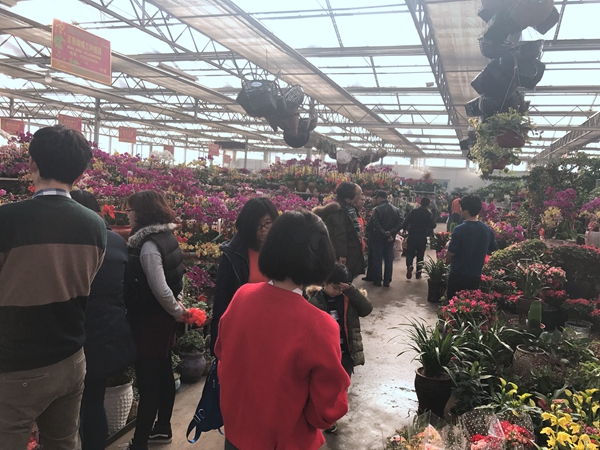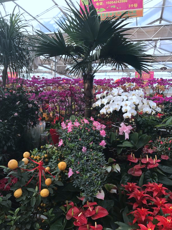 走进枯桃花卉交易中心,满眼都是争奇斗艳的鲜花。腊月里,室外虽寒气逼人,但交易中心恒温大棚内却一派春意盎然。整个交易中心面积8000平方米,这里有百余个摊位,小的有40平方米,大的百余平方米,盛放着上万种鲜花,漫步其中,沉浸在绚烂的花海里,享受植物散发的天然芳香,让人身心舒畅。距离春节还有不到两周,市场的生意早已忙碌了起来。应春节的景,富贵喜庆的花最有市场,此外,杜鹃、蝴蝶兰、牡丹、“金玉满堂”、水仙、电脑宝贝、多肉等也很畅销。有商户透露,平均每天的交易额在5000元左右。“每年过春节我们都会买几盆鲜花,看着喜庆,心情也好,尤其一些寓意好的年花让年味更浓。”市民胡女士跟对象从市南区赶过来,今年打算买盆富贵竹和品相好的蝴蝶兰。