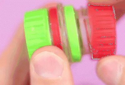 再用胶水将两个瓶盖沿断面粘合在一起