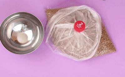 把家里装有谷物的带子从下方塞入