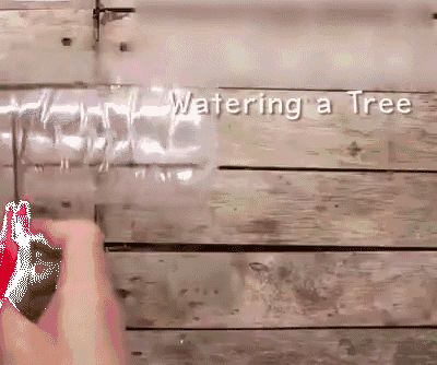 将瓶子插入花盆中注满水