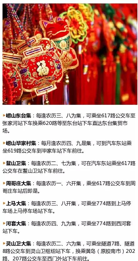 公交路线:从青岛市区乘坐客车到莱西车站下车后,沿威海路一直向东行到月湖公园附近,即可到达大集。