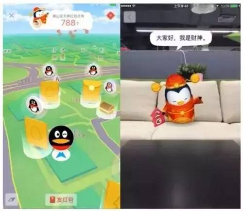 QQ的“LBS AR天降红包”分为商家红包、明星红包和个人红包三种。