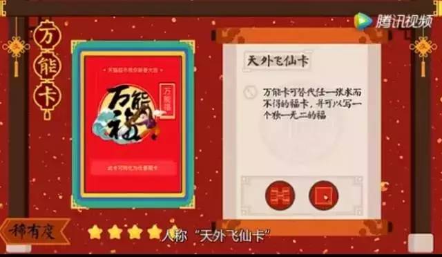 其中,万能福可以当做任何一张“福”来用;而顺手牵羊卡则可以随机抽取支付宝好友的福卡。