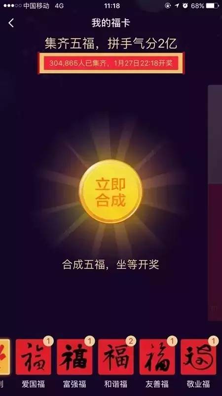 注意:目前已有30多万人集齐了五福,准备瓜分2个亿了,你可得抓紧时间啦!