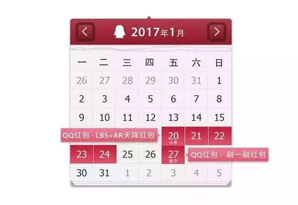 11日,QQ正式对外公布了QQ红包在2017年春节期间的三大玩法,并宣布在春节期间派发2.5亿现金红包和价值30亿的卡券礼包。