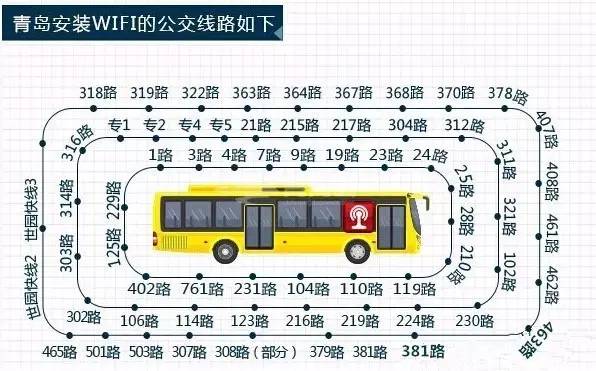 目前青岛市已经有10个站点可以使用免费Wifi,明年年底前将实现市区所有入网公交车站Wifi免费漫游。首期试点道路实施包括:香港路、东海路、福州路、南京路、山东路、燕儿岛路、海尔路、深圳路。