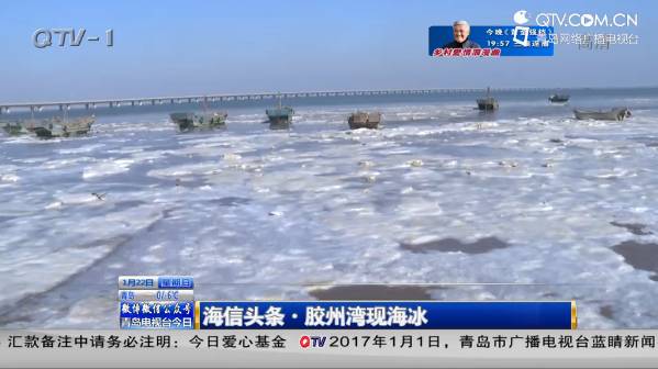 胶州湾也现大片海冰(来源:青岛网络电视台)