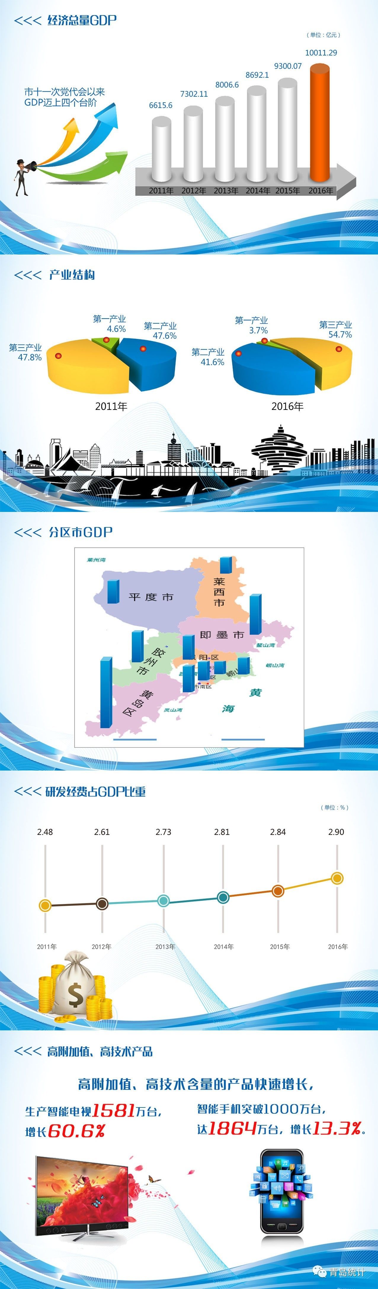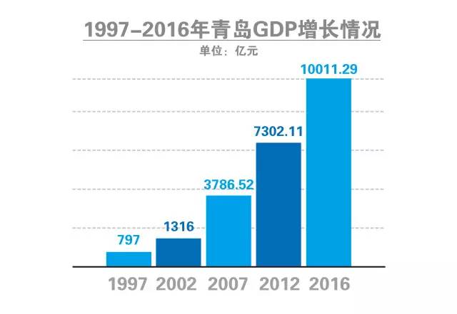 在过去的2016年,青岛市经济总量突破万亿,实现生产总值(GDP)10011.29亿人民币,按可比价格计算同比增长7.9%,青岛跨入“万亿俱乐部”,也成为全国第12个GDP总量跨越万亿元的城市!