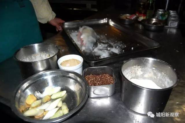 取新鲜鲈鱼,用刀去除鱼鳞和内脏,在清水中洗净淤血。“这一步看似简单却很重要,淤血不除做出的臭鱼会有一股浓重的腥味。” 徐新民说着,手中的菜刀在鱼身上飞快地游走。