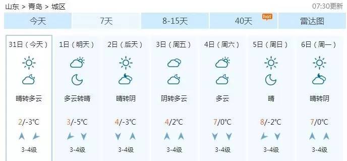今天的青岛天是蓝的,风是暖的气温比起昨天那是好多了