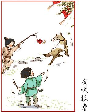 传说女娲创造万物生灵的时候,先造的鸡狗猪羊牛马,后造的人,正月初二又称为狗日。因此有说法是:大年初二,金吠报春。
