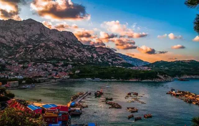 青山、村落、渔港、海洋、海岛相互映衬,高低错落,形成了一道优美的渔村风情,构成了一幅壮丽的山、海、天画卷。