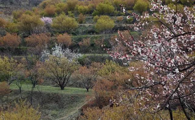 春天的九上沟,樱桃、杏树,花潮涌动,芬芳四溢,俨然一幅“浓涂淡抹总相宜”的水彩画。