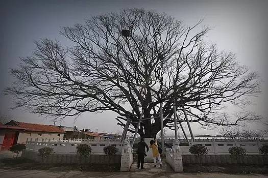 村庄南头有一株树龄600多年的黑檀古树,远远望去,粗大树干上的树冠像一柄硕大无比的巨伞,庇护着古村落的芸芸众生。