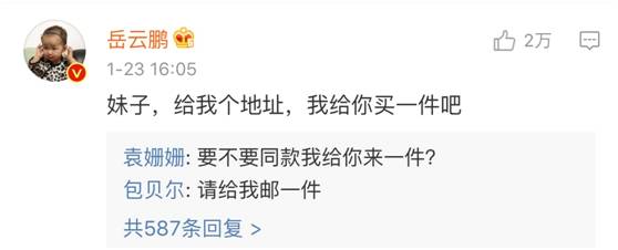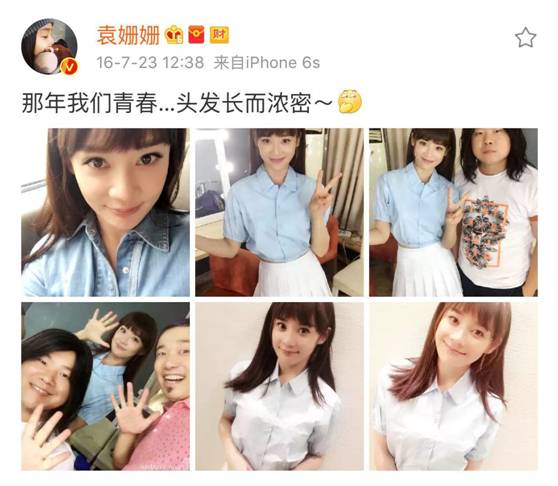 拍摄《疯岳撬佳人》的时候袁姗姗也发了微博,小岳岳长发飘飘出镜,着实“辣眼睛”。