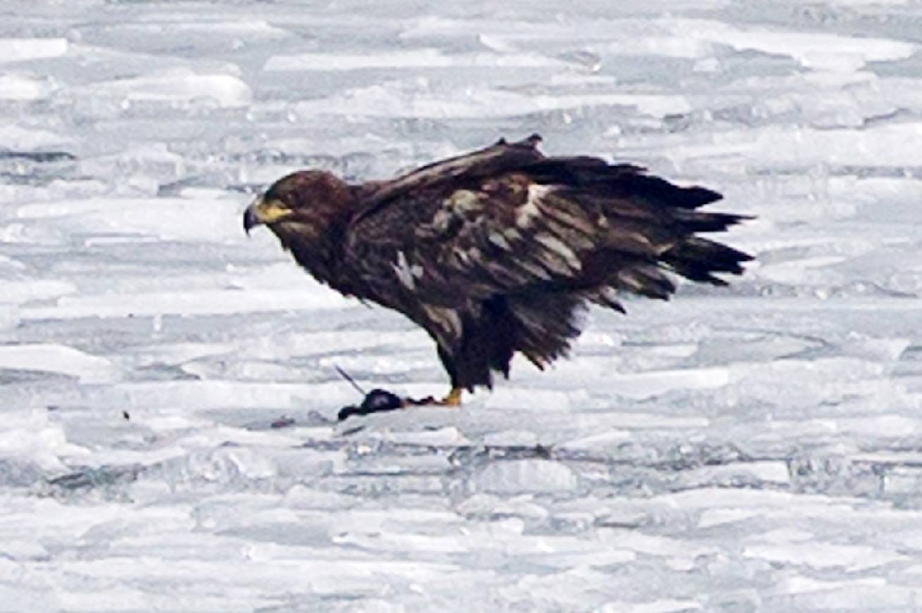 现场白尾海雕冰面捕食