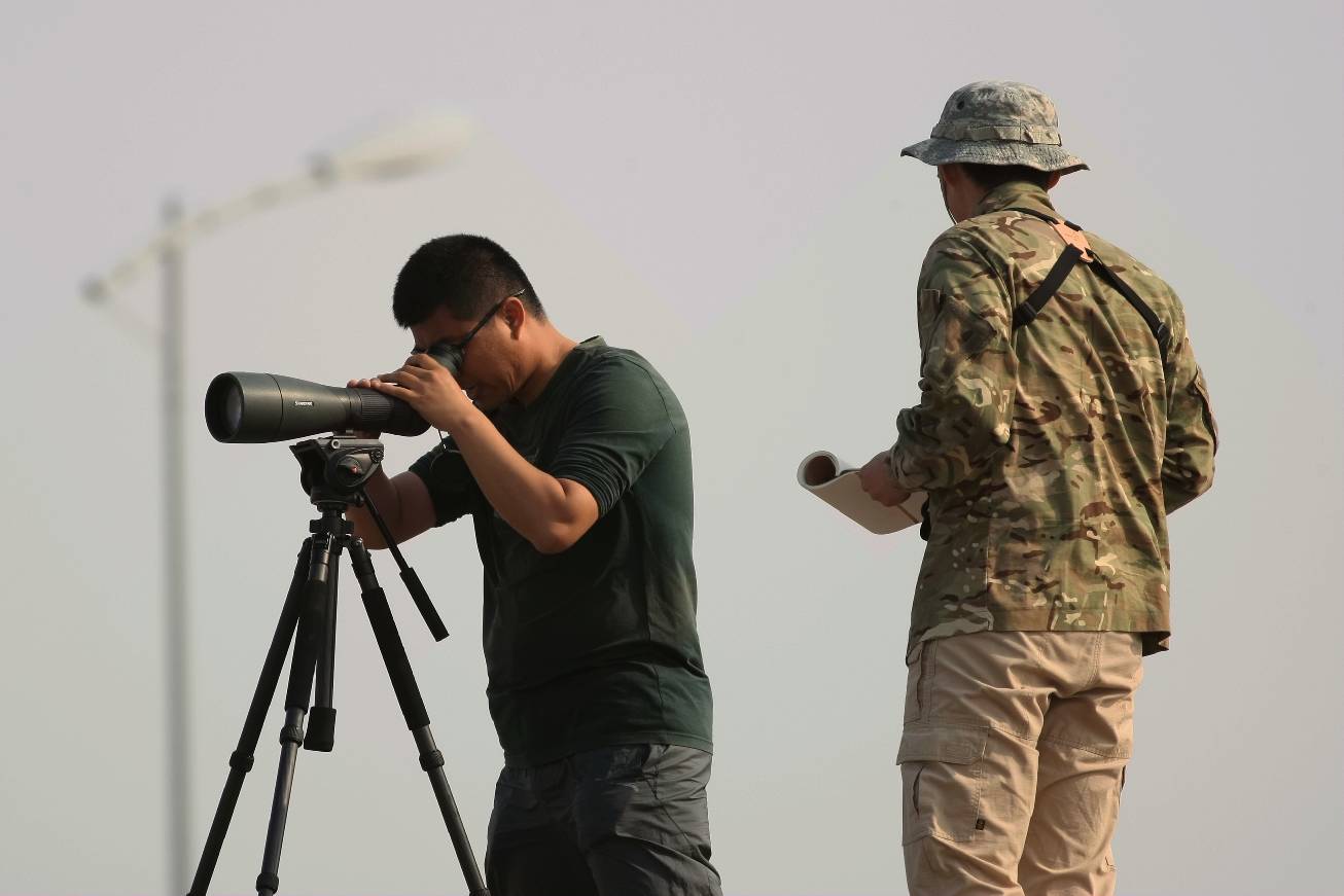 青岛市观鸟协会志愿者进行鸟类调查