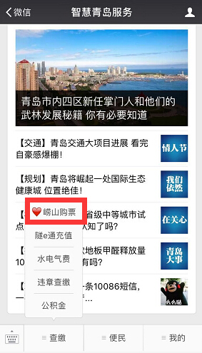 智慧青岛服务微信号上线智慧崂山功能 微信买票免排队