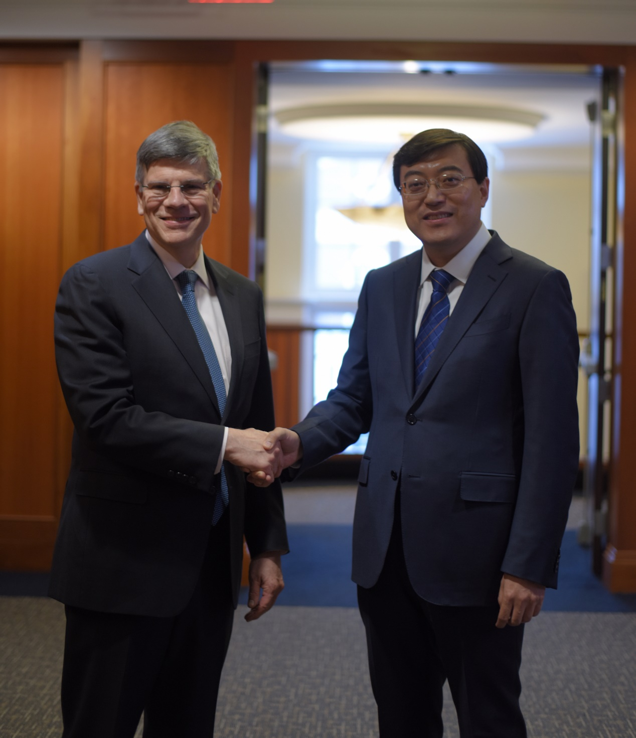 伊利集团董事长潘刚(右)与哈佛商学院柯伟林教授(左)合影