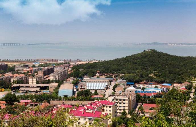 烟墩山山顶的视野相当开阔,是远眺跨海大桥的一个非常棒的地方,还能看到山下壮观的建筑群,景致非常壮阔。