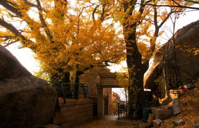 因石洞周围山峦一年四季时有白云缭绕得名的白云洞。但白云洞最有名的不是什么得道升天,而是洞前两株千年白果和百年玉兰。两株白果树,大可合抱,如巨伞撑天,两树一雄一雌,千年相伴,至今生机盎然。