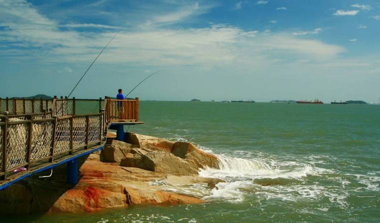 这里是青岛海域常年可垂钓的钓场之一,鱼类资源丰富,这里的真鲷、黑鲷、鲈鱼、六线鱼、黑鲪、鳗鱼等都是钓获量大的。特点是钓落不钓涨,根据潮位调整浮钩脑线长度,十拿九稳地能钓到鲈鱼。