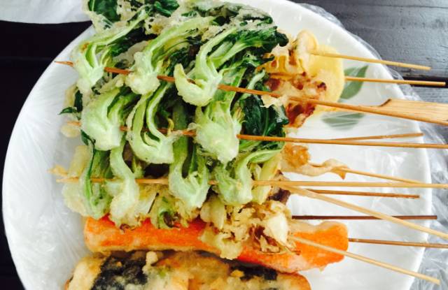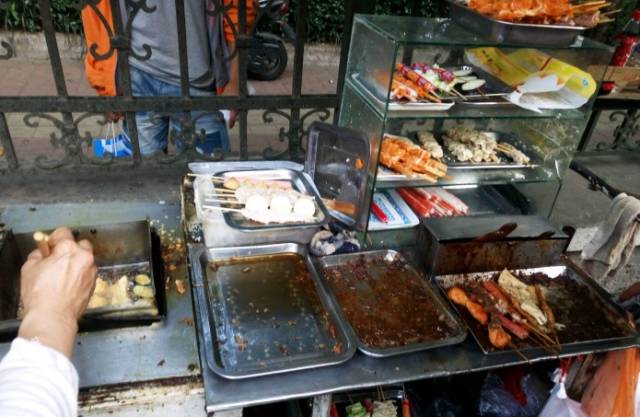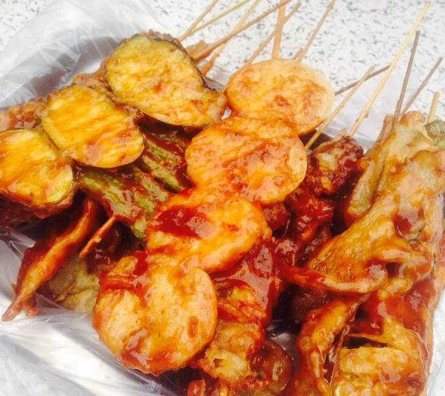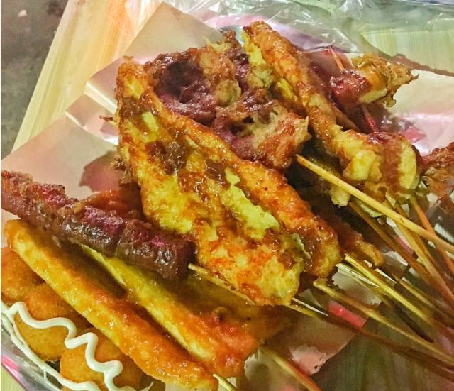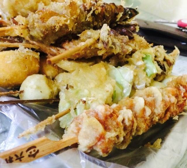 老大爷还是传统的裹面炸,各种小串裹上粘糊,出货酥脆喷香,看色泽油的质量还是不错的哦。趁热抹上各种酱,齐活!来吃的人大多都是吃的小时候的情怀,现在街上已经很少能找到这种摊子了。
