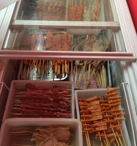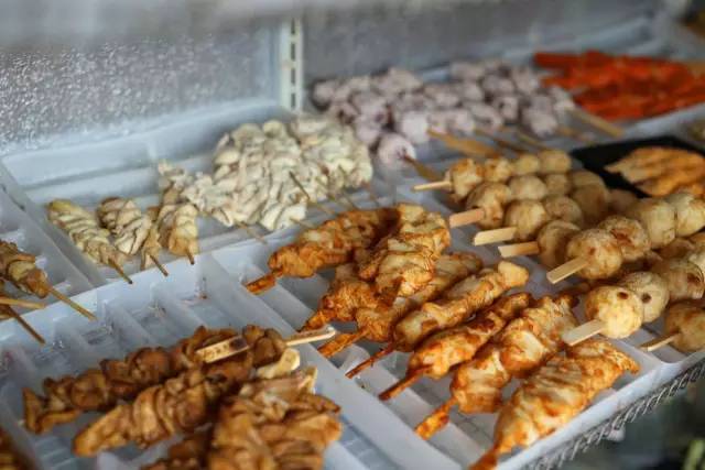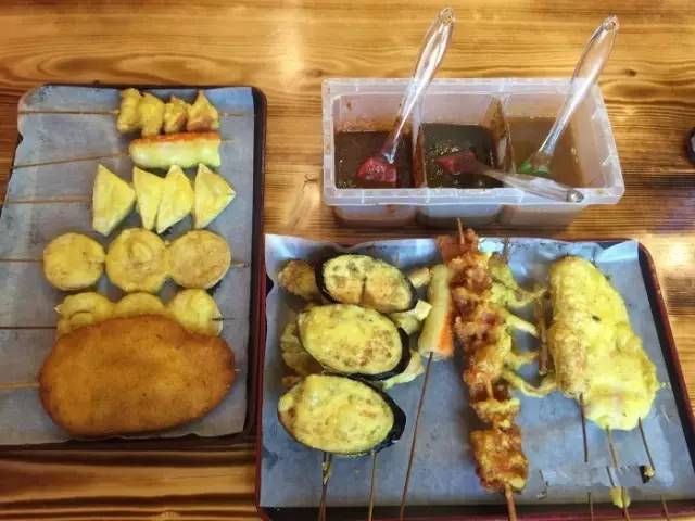 有20年历史的炸串,从小推车到门店,种类也是应有尽有!而且每张桌子上都有酱料盒,四种酱,甜酱、辣酱、五香咖喱酱、果酱。辣酱特别特别辣,比在很多家川菜店的都要辣!超级过瘾!