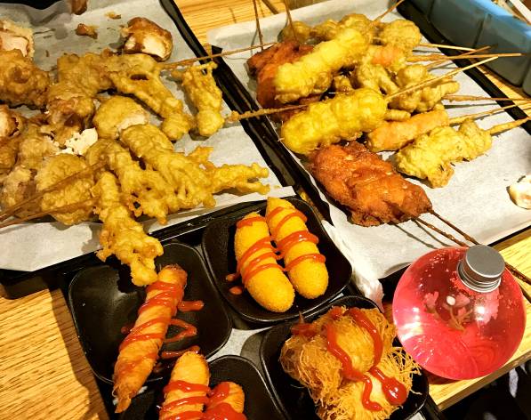 炸出来的炸串都是金黄色的,用的油应该是不错的,再加上炸串上的面皮也比较薄,每桌3种酱料自己刷,果味酱、五香味酱、辣酱,满足爱吃炸串的你各种口味~
