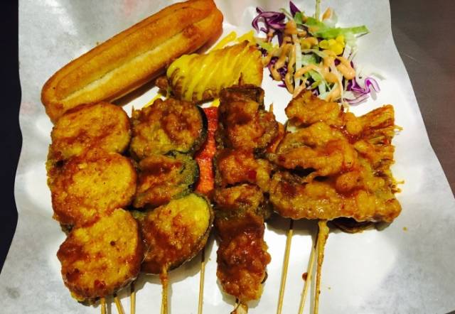 推荐鸡胸肉,薄薄的一片,抹上面炸炸,真是酥酥脆脆,配上他家各种酱的混合,味道100分,其它的也很不错,炸的火候掌握的很好,千里迢迢也要来吃你呀!