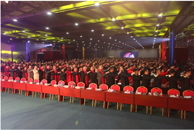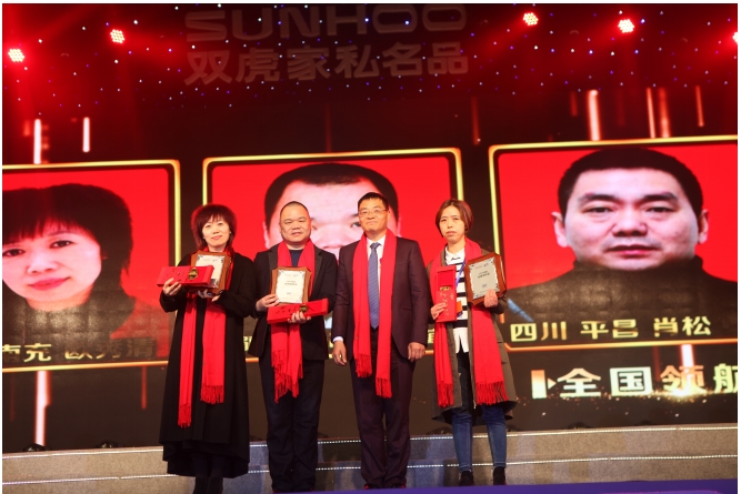 首先董事长尹显建先生对在座的经销商家人致以最真挚的问候。他提到,双虎公司和在座的经销商家人,除了是合作伙伴关系,同时也是亲人关系。有陪伴了几年的,有十多年的,也有二十多年的。正是因为彼此之间像家人一般的信任和支持,才铸就了双虎今天的辉煌。董事长向在座的经销商家人、公司员工表示最真挚的感谢,并且号召大家同心同德,为了共同的梦想而奋斗,创造更加辉煌的未来!