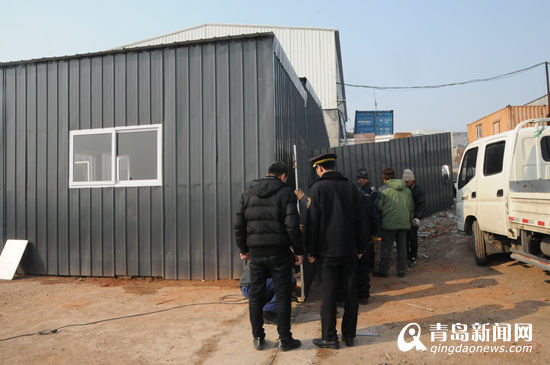 昨天上午,崂山城管中韩中队的执法人员来到深圳路延长线周边,对此处新建的一处1000平米的铁皮厂房进行依法拆除。据了解,在去年9月份的时候,为配合深圳路打通工程,崂山城管执法人员依法对影响项目施工的厂房进行了拆除。工程开工以后,工地旁剩余空地一直闲置,就有人对这处空地又动起了“歪脑筋”。就在春节期间,抢建起了这处1000余平方米的铁皮厂房。