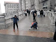 @Nicole徐阿妹- :第二个可能根本就没想用走的方式下去,你看他最后好淡定地起来了,心里可能在想这比走省事多了!